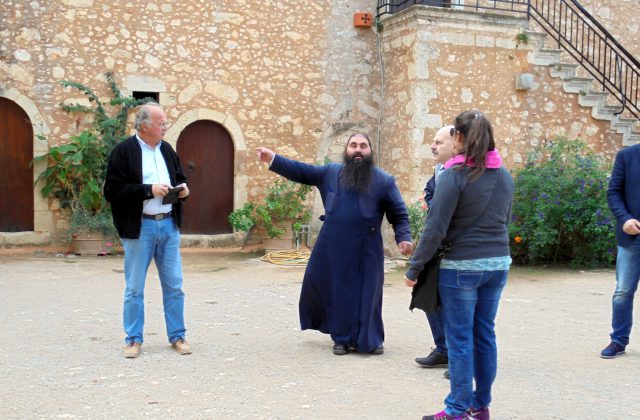 Ο μοναχός που υποδέχτηκε την ομάδα, προχώρησε σε ξενάγηση στους χώρους της ιεράς μονής προσφέροντας ιστορικά στοιχεία αλλά και πληροφορίες για τη σημερινή λειτουργία της.